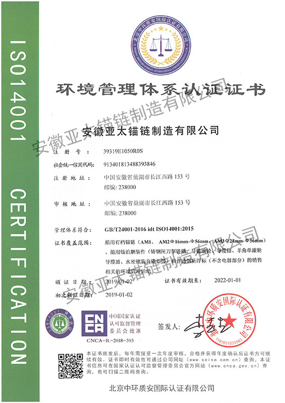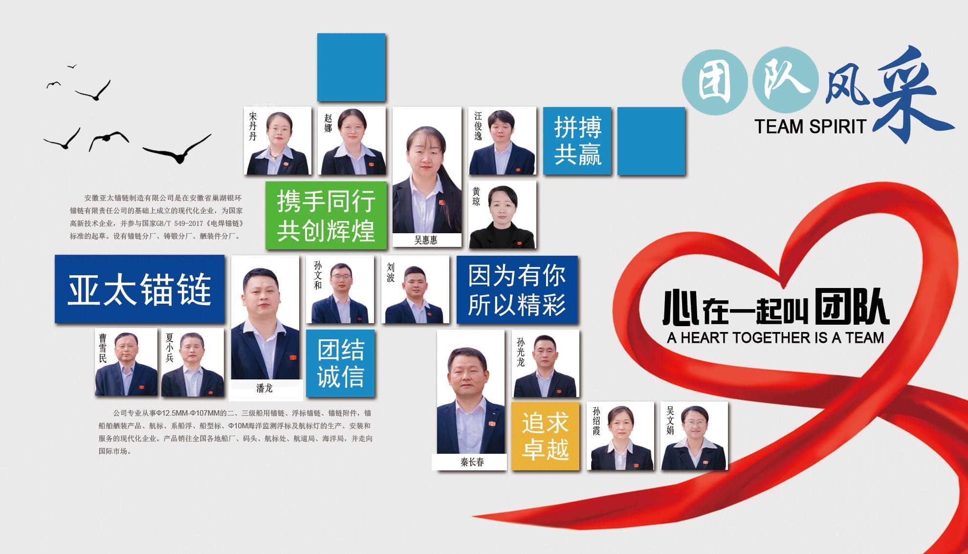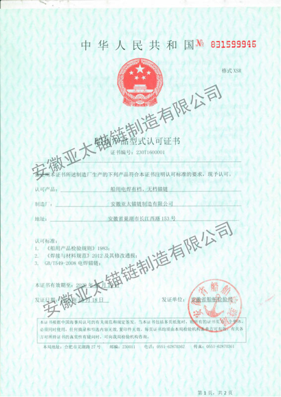 安徽亞太錨鏈制造有限公司是國家高新技術企業(yè),也是國家GB/T 549-2017《電焊錨鏈》標準的起草和制定單位之一。公司旗下設有錨鏈分廠、浮標分廠、舾裝件分廠等多個分廠。公司專業(yè)從事φ12.5mm-φ107mm二、三級船用錨鏈、浮標錨鏈、錨鏈附件,錨、船舶曬裝產品、航標、系船浮、船型標、多種規(guī)格海洋監(jiān)測浮標及航標燈等產品的生產、安裝和服務。目前公司的產品銷往全國各地船廠、碼頭、航標處、航道局、海洋局,并已走上國際市場,如東南亞、中東、歐美等國家。